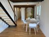 Cabe destacar también la mezcla de diferentes materiales que existen dentro de la vivienda. Cada material representa una época de la vivienda distinta y desde ARKin creemos que lo interesante era conjugar estas diferentes épocas añadiendo una nueva materialidad que no sustituya las anteriores, sino que las complemente. Así pues, encontramos una estructura de madera antigua, tratada y reforzada cuando ha sido necesario con acero. Además utilizamos una madera en tono más claro para diferenciarse de la antigua, también encontramos nuevas estructuras de acero y una pared donde preservamos el ladrillo antiguo, realizando un contraste entre la planta baja y la planta primera.