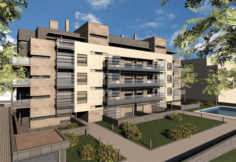 ARKin diseña un edificio de viviendas de 3 y 4 dormitorios, con piscina, garajes y trasteros.