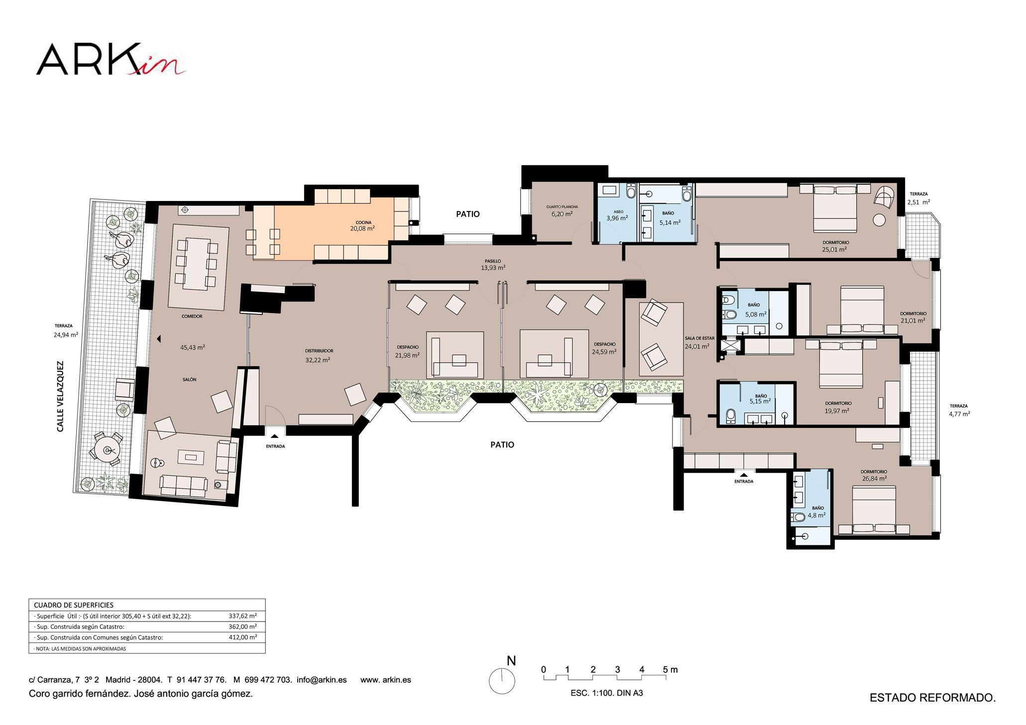 En las infografías mostramos una propuesta de reforma integral. Se plantean varias alternativas de distribución, tal y como se puede apreciar en los planos ofrecidos.