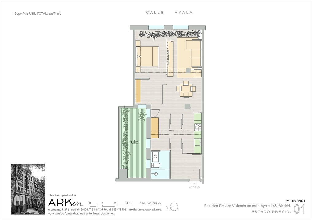 Los planos e imágenes corresponden al diseño proyectado por el estudio ARKin. Actualmente la vivienda se encuentra sin reformar. El precio de venta es el de la vivienda más la estimación del proyecto de reforma en base a unas calidades medias.
