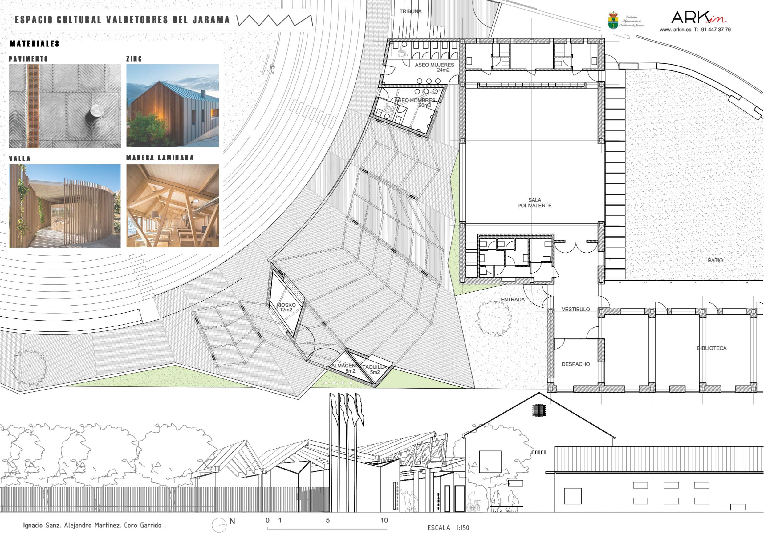 Intervención en  La Casa de la Cultura, situada junto al Anfiteatro – Plaza de Toros, de Valdetorres del Jarama, Se sitúan en parcelas contiguas, y comparten una pequeña plaza en la vía pública que sirve de espacio de acceso a ambos edificios.