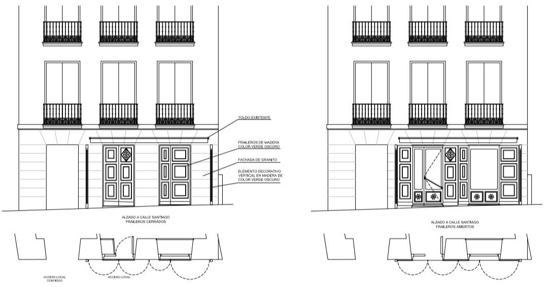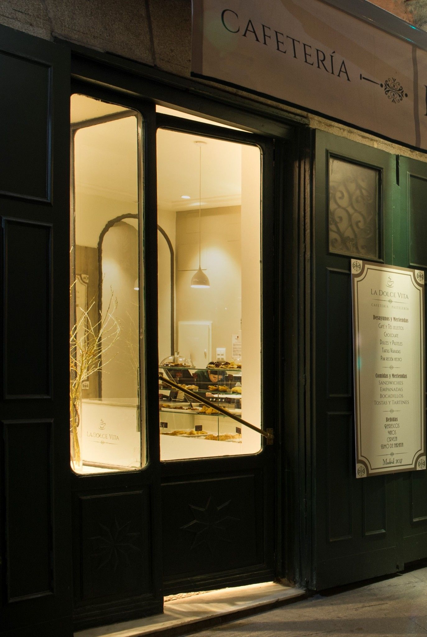 Arkin recibe el encargo de realizar una pastelería en un local de Madrid centro. Nos encontramos un precioso Local, de principios del XX, que tiene categoría BIC, Bien de Interés Cultural. Tiene un cierre de madera formado por puertas en verde inglés, puertas protegidas, y una estructura de escaparate en madera, de época.