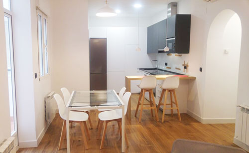 Reforma de vivienda en el centro de Madrid. ARKin realiza la reforma de un bajo en el barrio de Chamberí. La clave del proyecto reside en hacer que el patio ilumine naturalmente el interior, pudiendo llegar a varias estancias, evitando que los tabiques innecesarios interrumpan la luz.