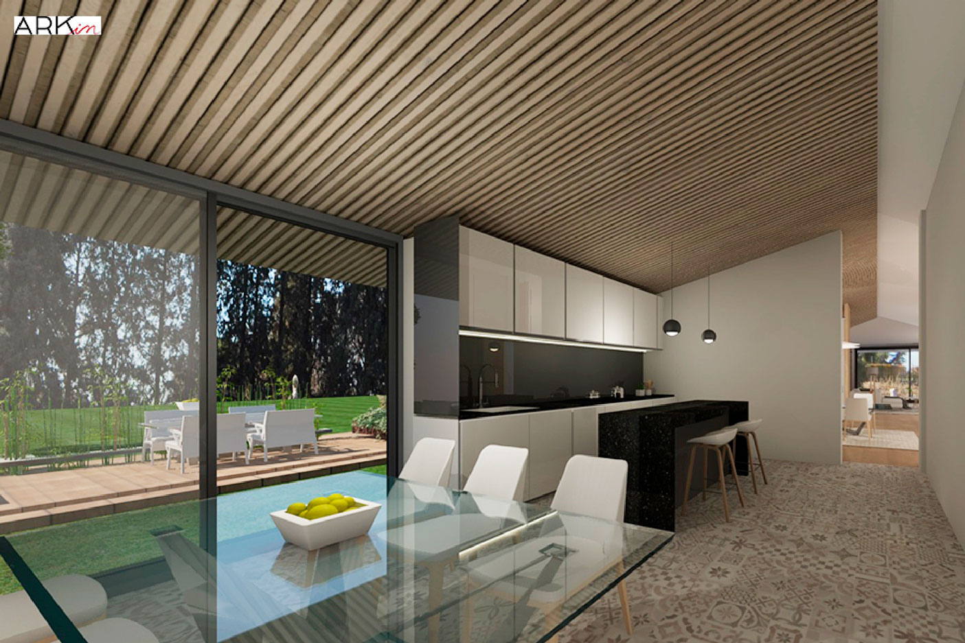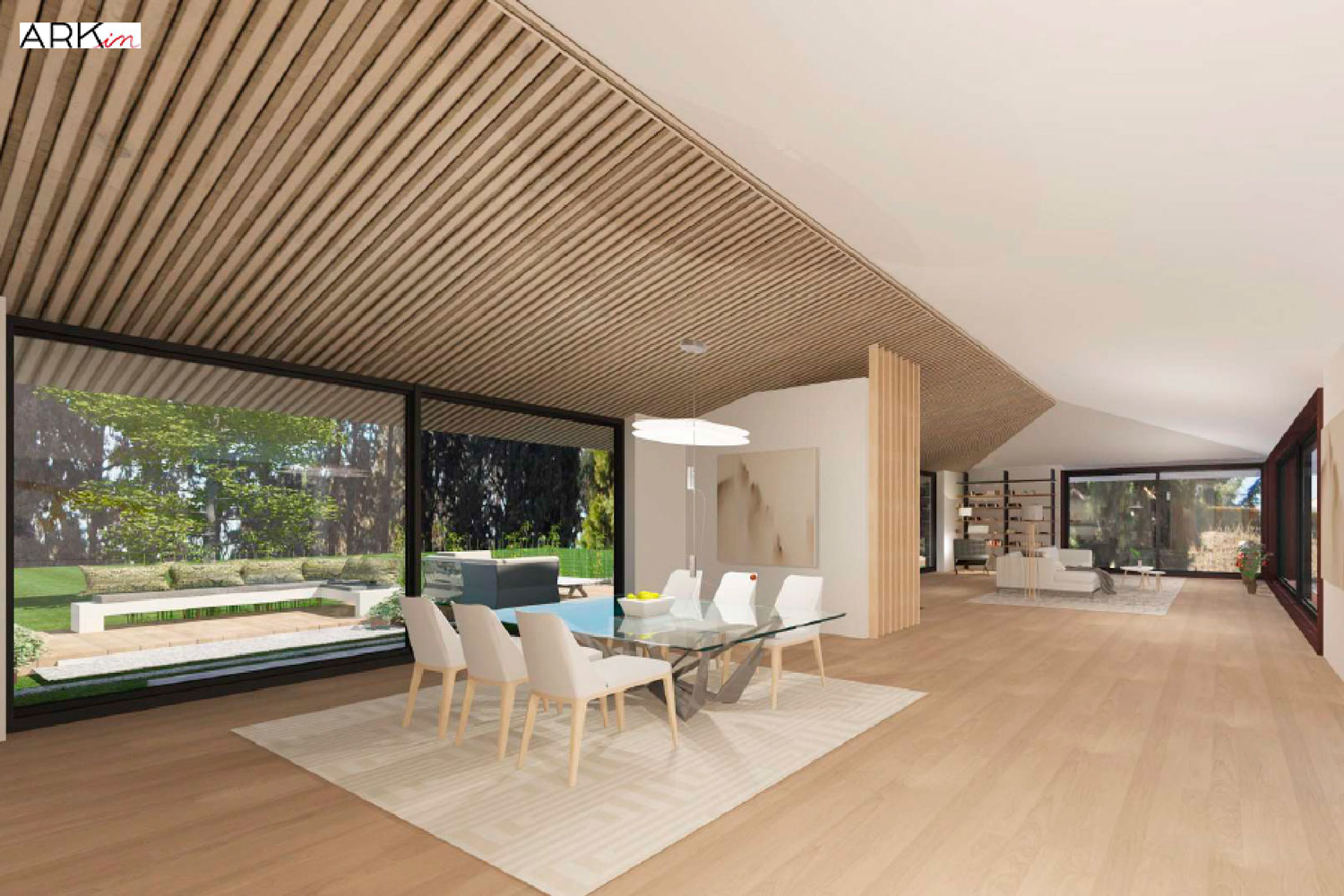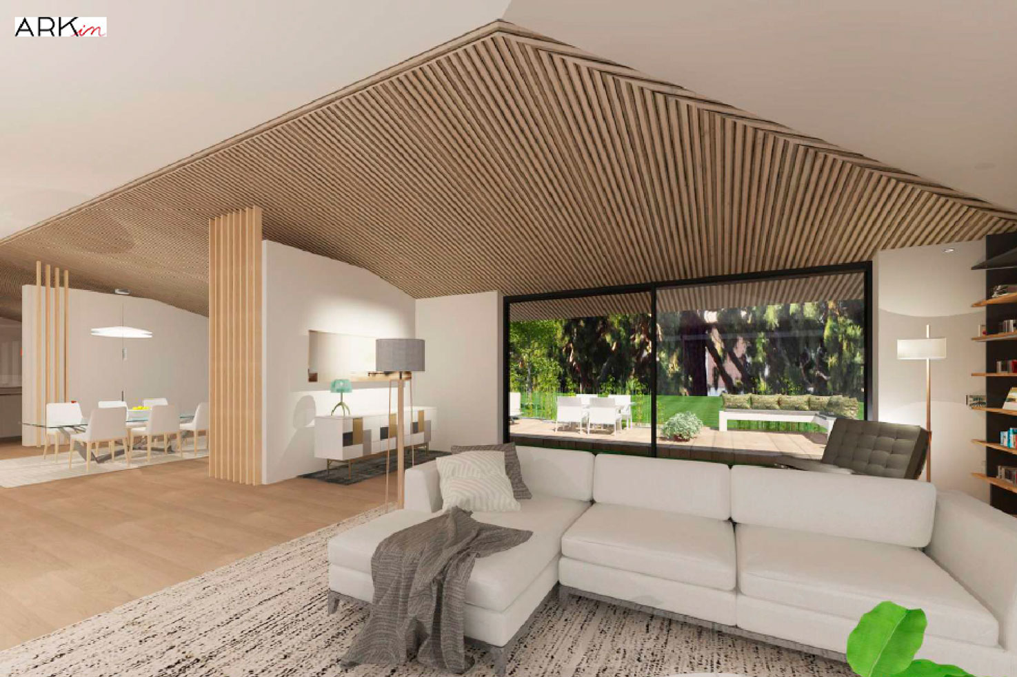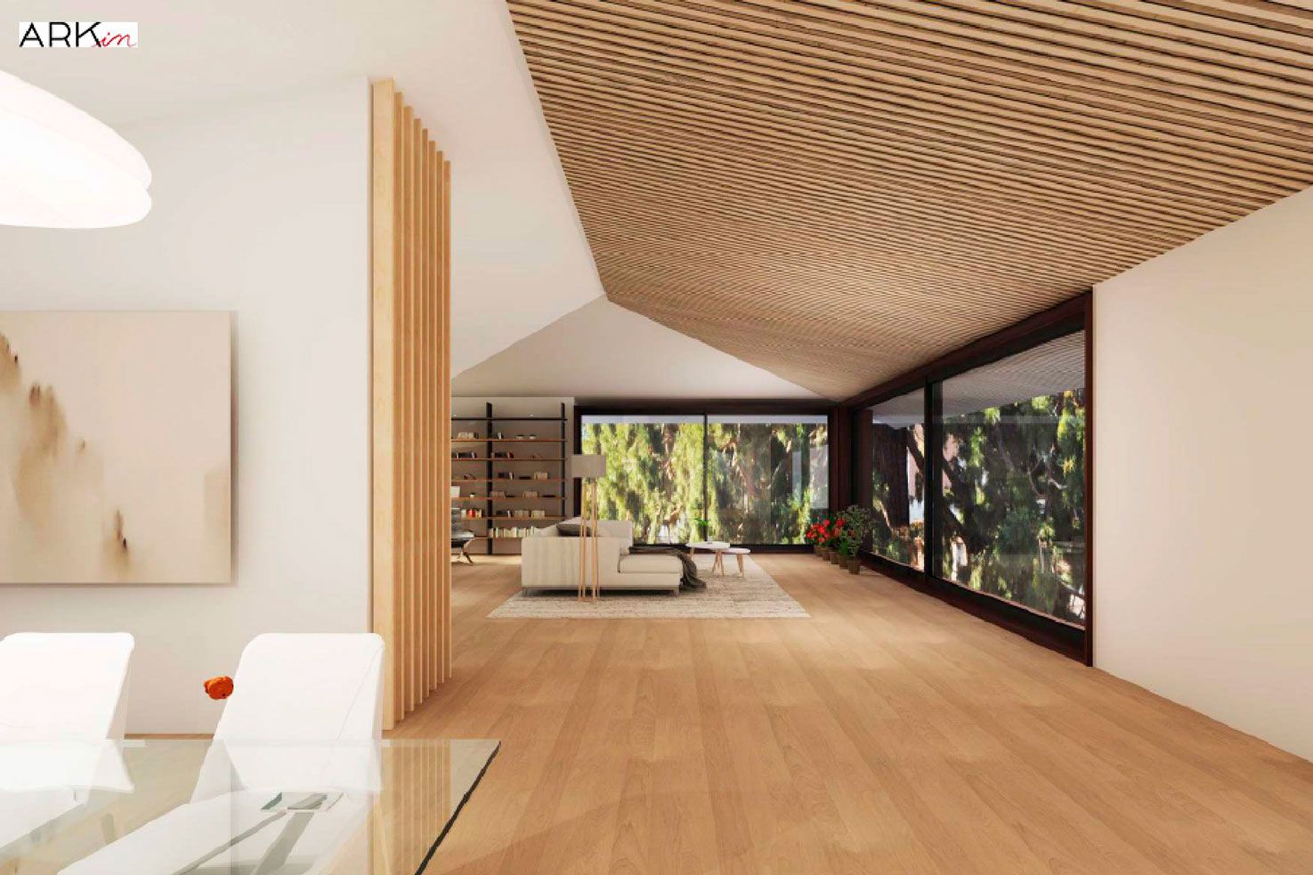 Proyecto de reforma integral. Se aprovecha la forma del tejado a dos aguas para otorgar un plus de espacialidad a la vivienda, a la vez que se abren grandes huecos para ganar luminosidad y se eliminan tabiques para obtener una continuidad espacial.