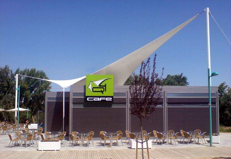 - De día, la vela proporciona sombra al restaurante y la terraza y de noche, cuando se ilumina desde abajo, sirve de reclamo ya que la luz y su reflejo en el río, se ven desde la otra orilla.