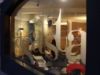 - Los colores oscuros de las embocaduras de los huecos de fachada y las grandes lámparas rojas en los escaparates hacen que el interior del local llame más la atención desde la calle