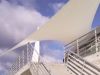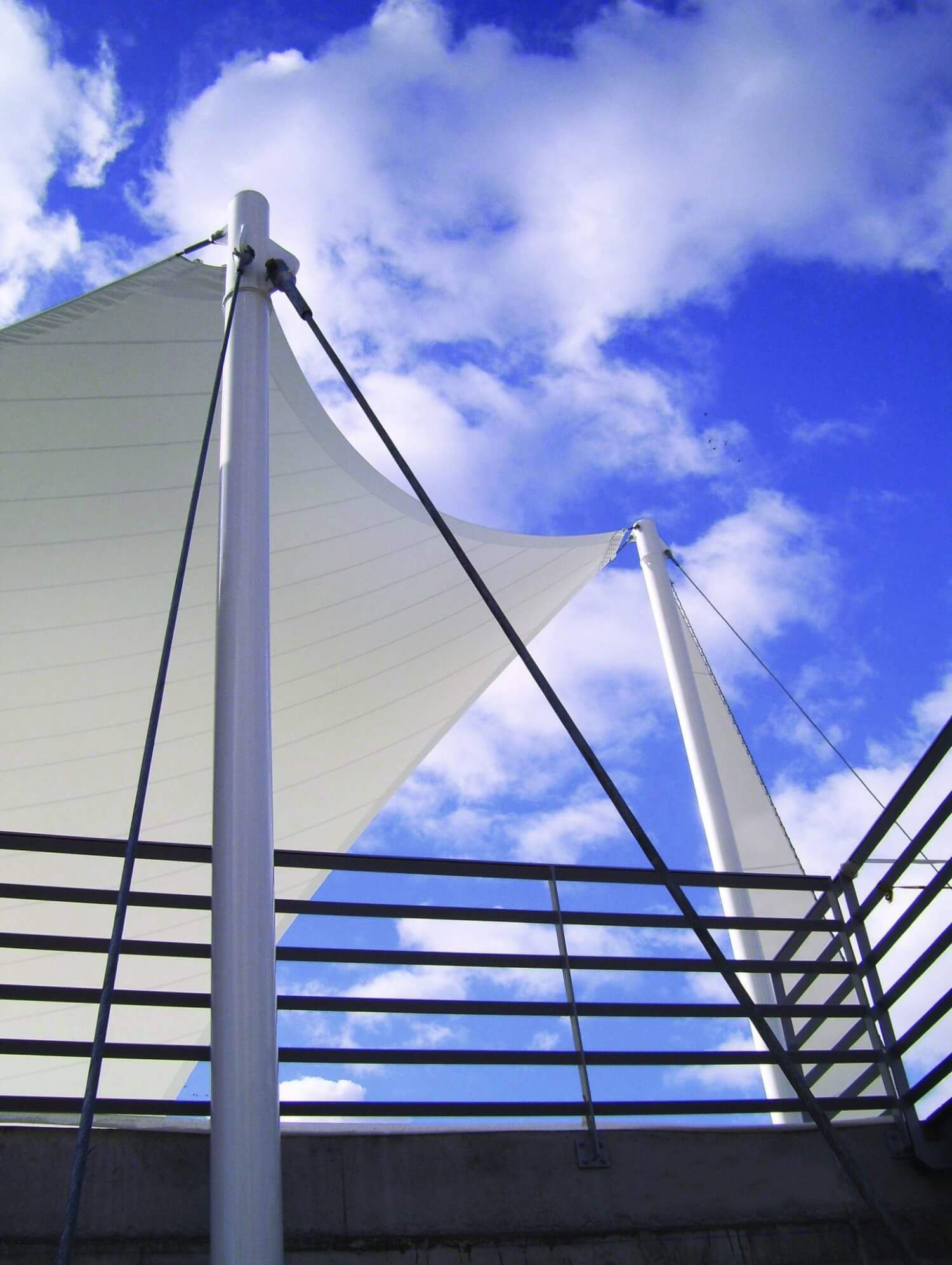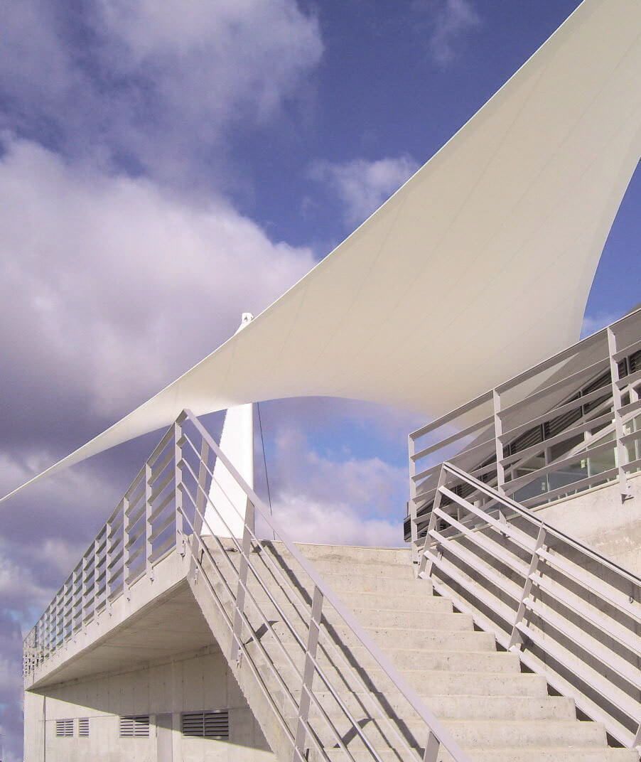 El elemento singular de este proyecto lo constituye la gran vela de lona blanca, que recuerda el uso náutico del edificio y al mismo tiempo sirve de sombra y reclamo, pues, cuando se ilumina de noche es como una gran lámpara que refleja la luz y da visibilidad al edificio desde la otra orilla.
