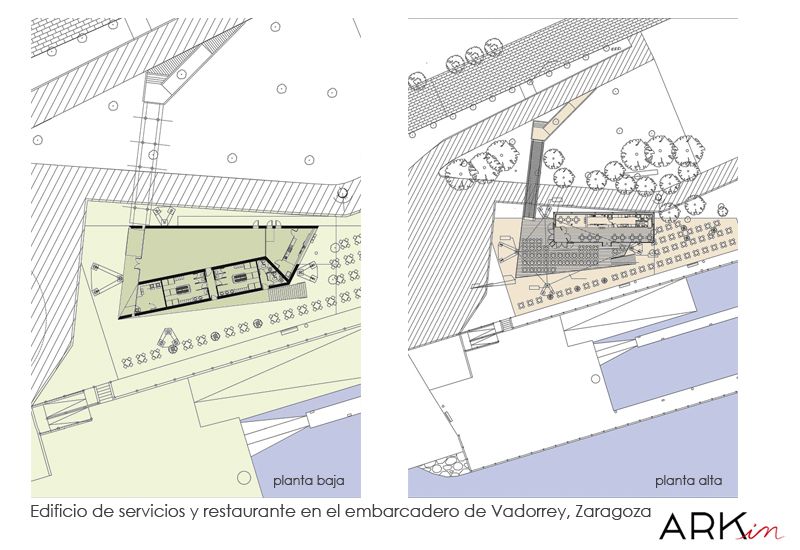 Para completar el plan de revitalización de la Ribera del Ebro a su paso por Zaragoza, ARKin recibe el encargo de proyectar y ejecutar el edificio de servicios que albergará un restaurante con terraza en la planta superior y un embarcadero en su nivel inferior.El planteamiento de diseño es análogo al de los restaurantes de la Ribera del Ebro con los que ARKin ganara el concurso de ExpoAgua 2008.